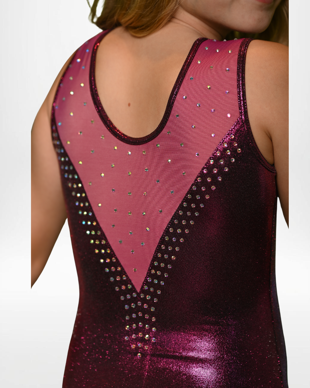 Deep luxurious berry foil, sweetheart neckline, V mesh insert back and glamorous diamanté design - Masquerade is a winter stand out beauty.